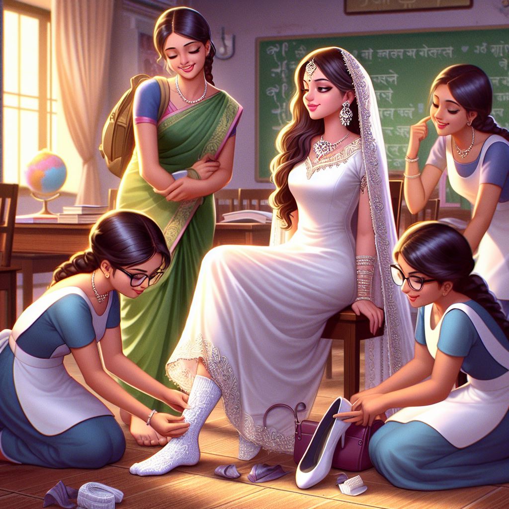 This wealthy Indian girl brings her maids along to attend to her needs in classes as her classmate looks in envy